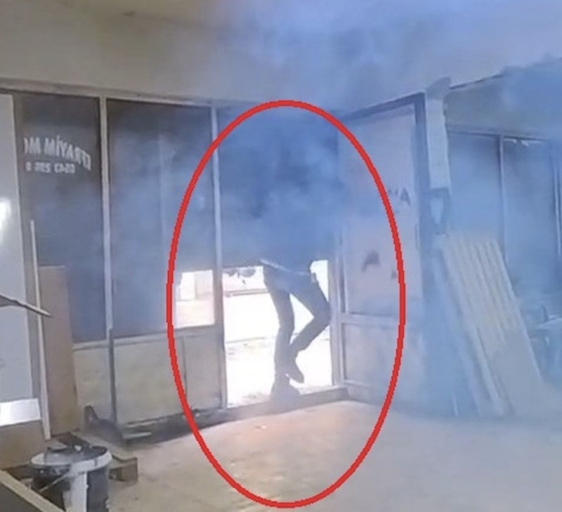 Patlama sesleri üzerine içerideki kişi panik yaşadı.