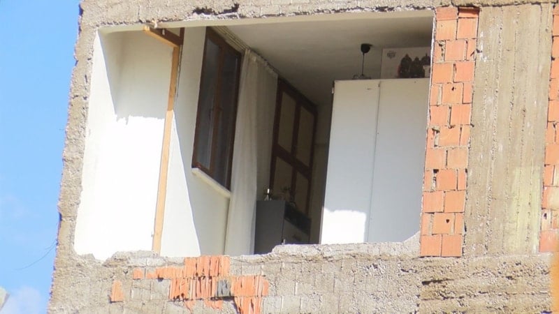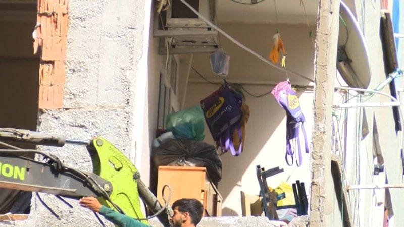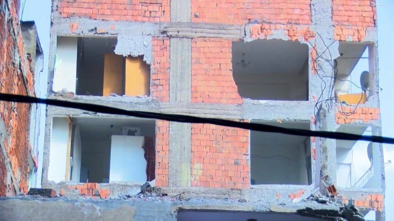 Depremde ağır hasar alan bir binanın yıkımı sırasında, bitişikteki apartmanın bazı odalarının duvarlarının hiç yapılmadığı ortaya çıktı. Sakinler, binanın yapısal güvenliği konusunda endişeli.