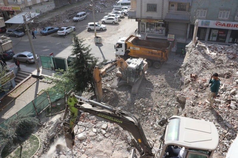 5 Nisan Mahallesi’nde bulunan 5 katlı Medya Apartmanı, 2023 Kahramanmaraş depremlerinde ağır hasar aldıktan sonra yıkım kararıyla kontrollü şekilde kaldırılmaya başlandı.