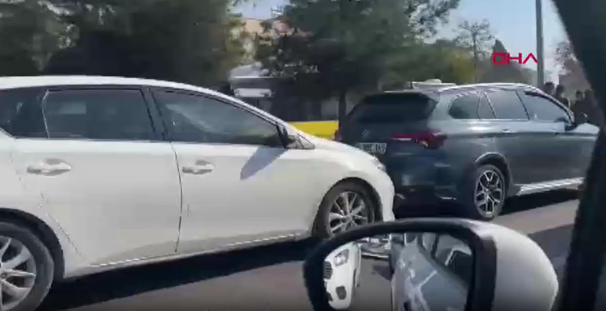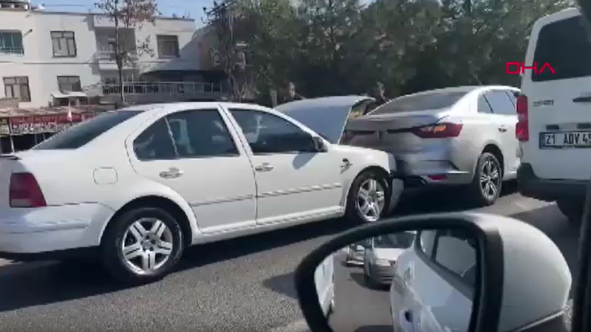 Seyir halindeki araçlardan biri, kırmızı ışık yanınca durdu. Arkasından gelen 9 araç da birbirine çarptı.