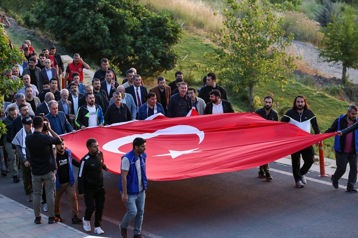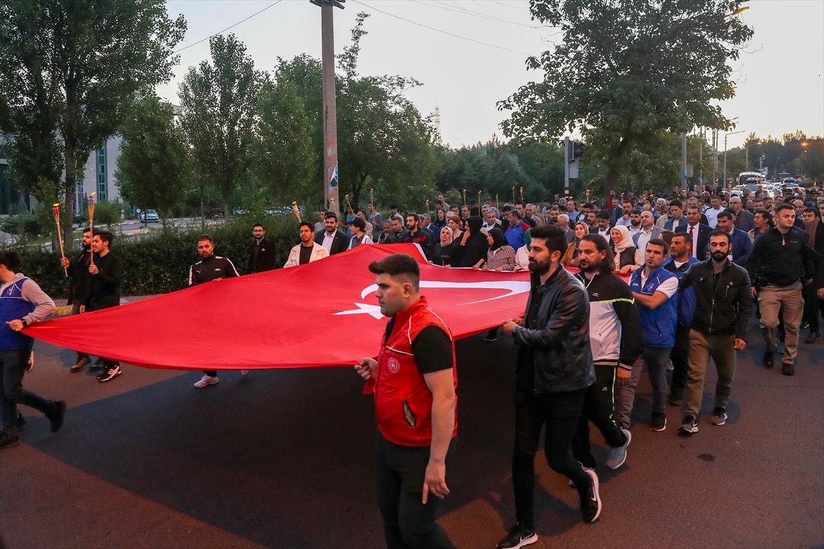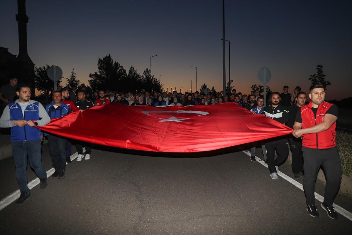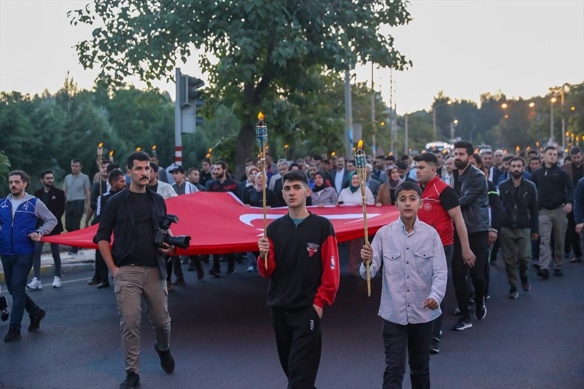 Diyarbakır Fetih Camisi'nden sabah namazı sonrası meşaleler eşliğinde başlayan yürüyüş, Hz. Süleyman Camisi'ne kadar sürdü.