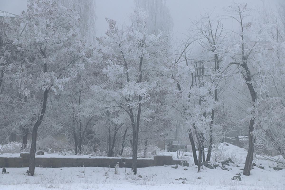 Kentte ağaç ve bitkiler de kırağı tuttu.