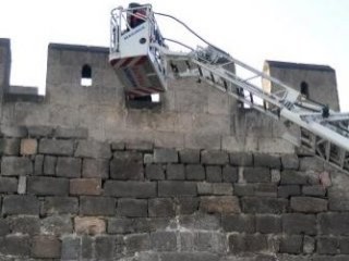 Sinir krizi geçiren ve surların merdivenlerinden inemeyecek durumda olan Hatice K.'yı indirmek için olay yerine itfaiyenin merdivenli aracı çağrıldı. Sürekli ağlayan ve dolandırıldığını söyleyen Hatice K., polis ve itfaiye ekiplerinin yardımıyla, merdivenli itfaiye aracındaki sepete alındı ve indirildi.