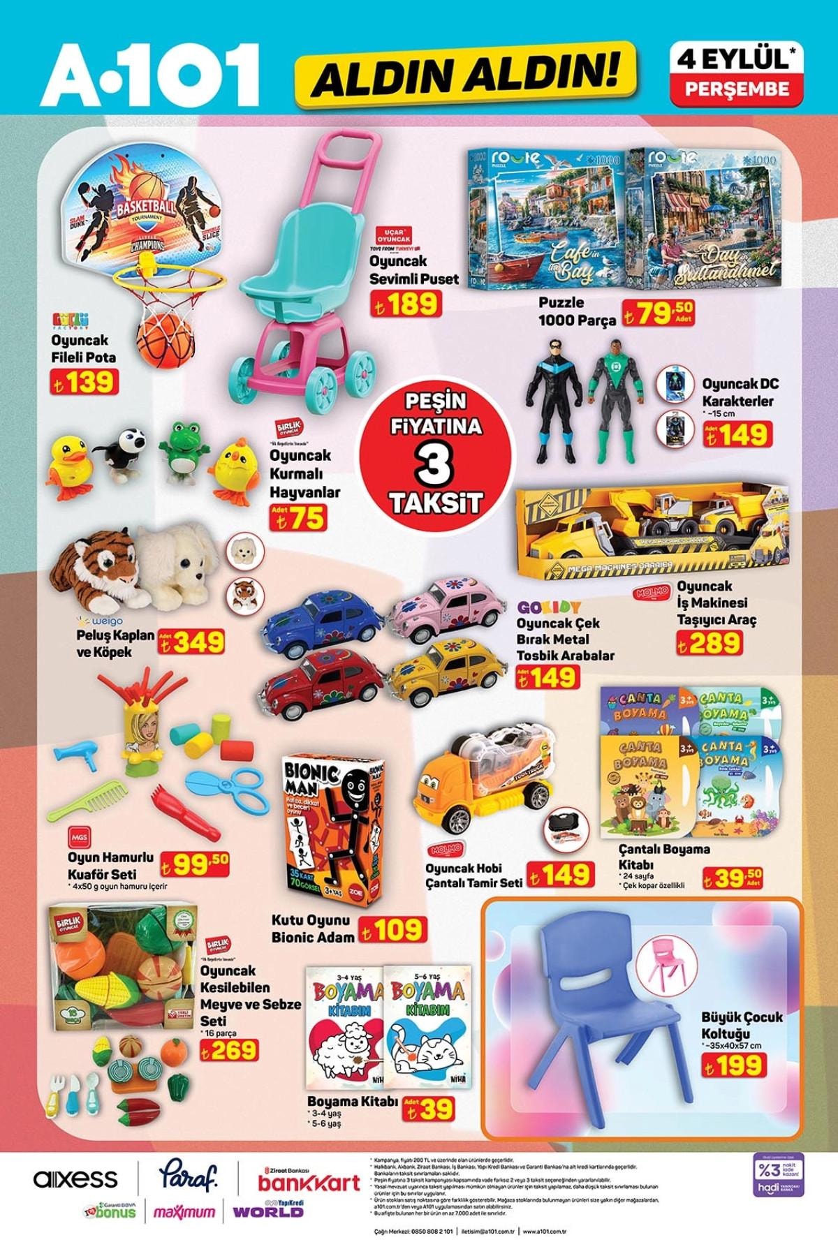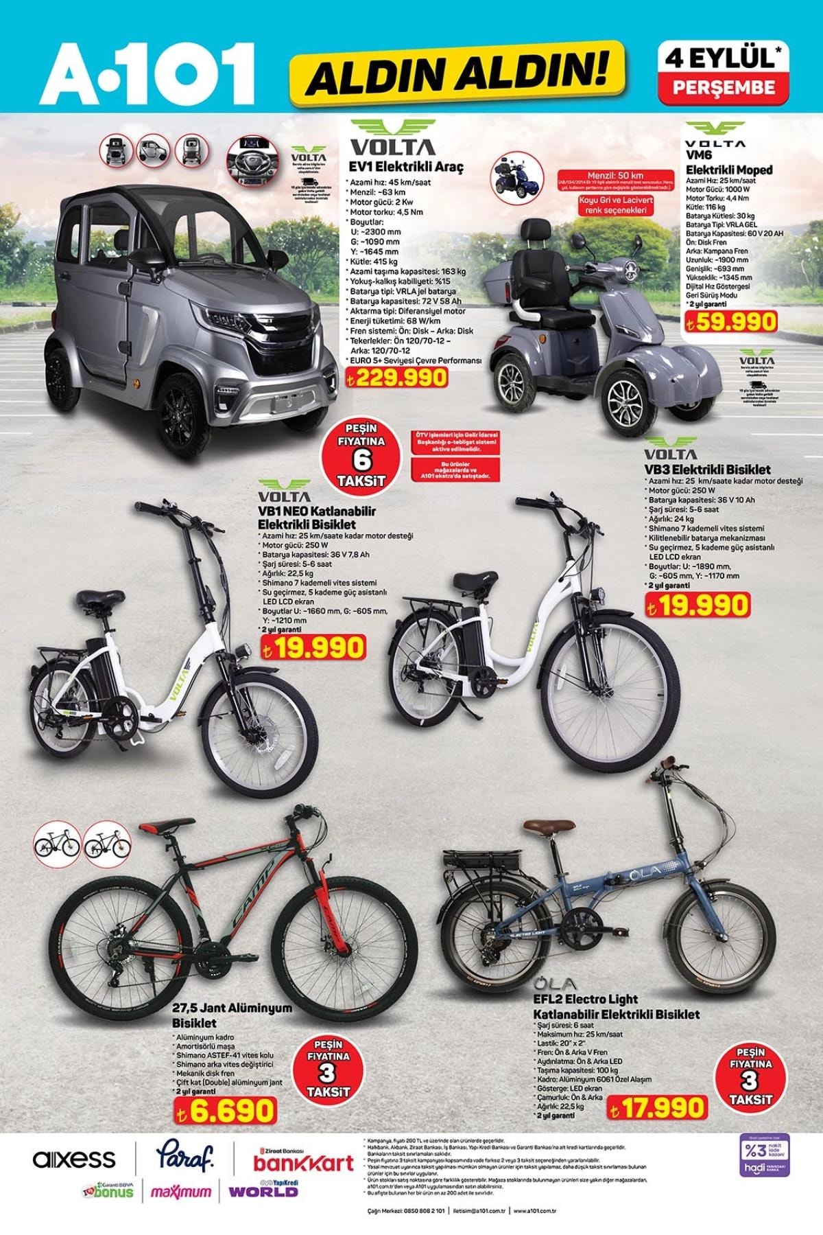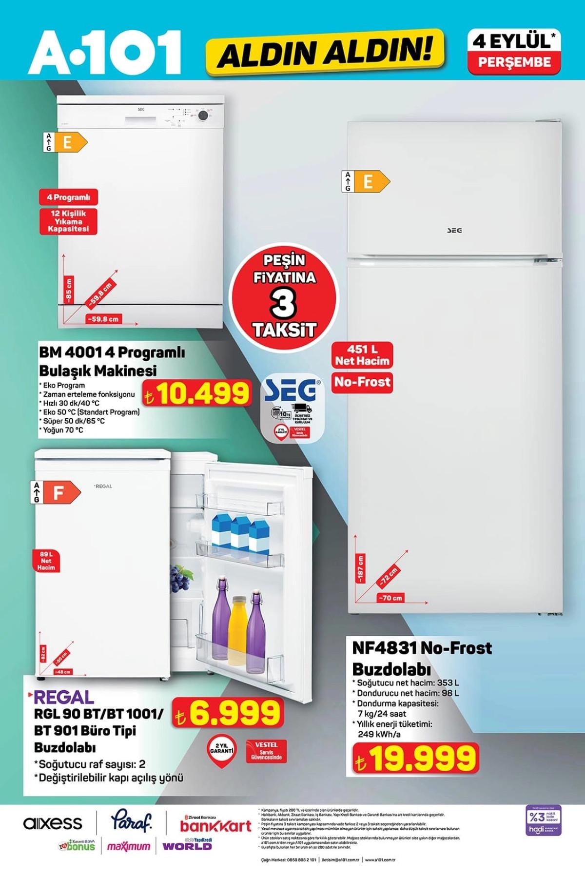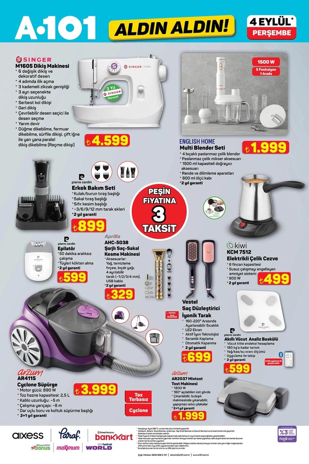A101, Eylül ayının ilk aktüel kataloğunu yayımladı. 4 Eylül 2025 Perşembe günü geçerli olacak katalog, elektronikten beyaz eşyaya, mutfak gereçlerinden kişisel bakım ürünlerine kadar geniş bir ürün yelpazesi sunuyor.