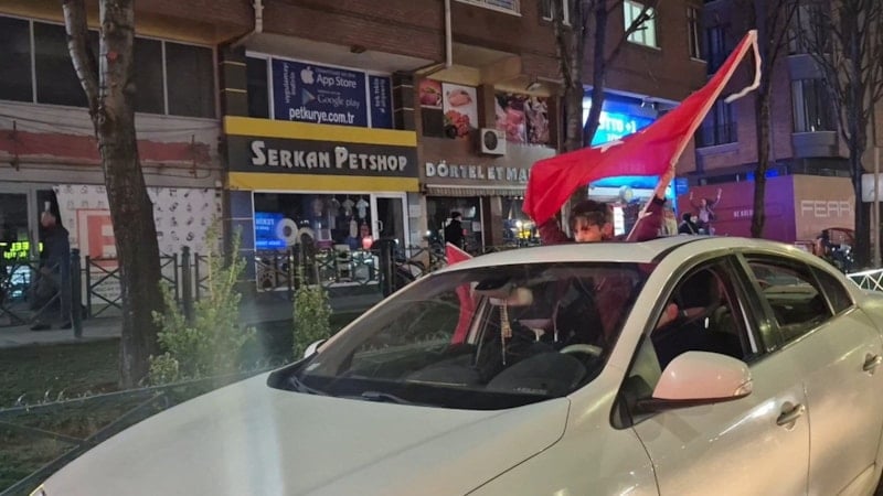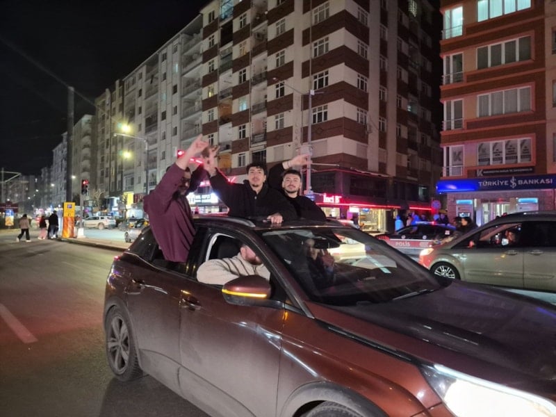 Bulvar boyunca kırmızı-beyaz bayraklarla donatılan araçlar konvoy oluştururken sürücüler, kornalarla kutlamalara katıldı. Vatandaşlar araçların camlarından çıkarak marşlara eşlik etti.