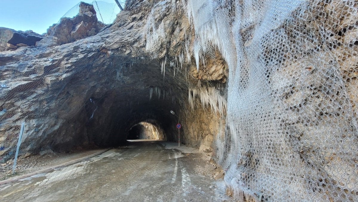İlçe sakinlerinden Şevket Gültekin, soğuk havanın etkisiyle Taş Yolu’nun özellikle tünel içlerinde buz tuttuğunu belirterek, “Tünellerde oluşan buz sarkıtları fotoğrafseverlerin ilgisini çekiyor. Ancak yol, bu haliyle oldukça tehlikeli” dedi.