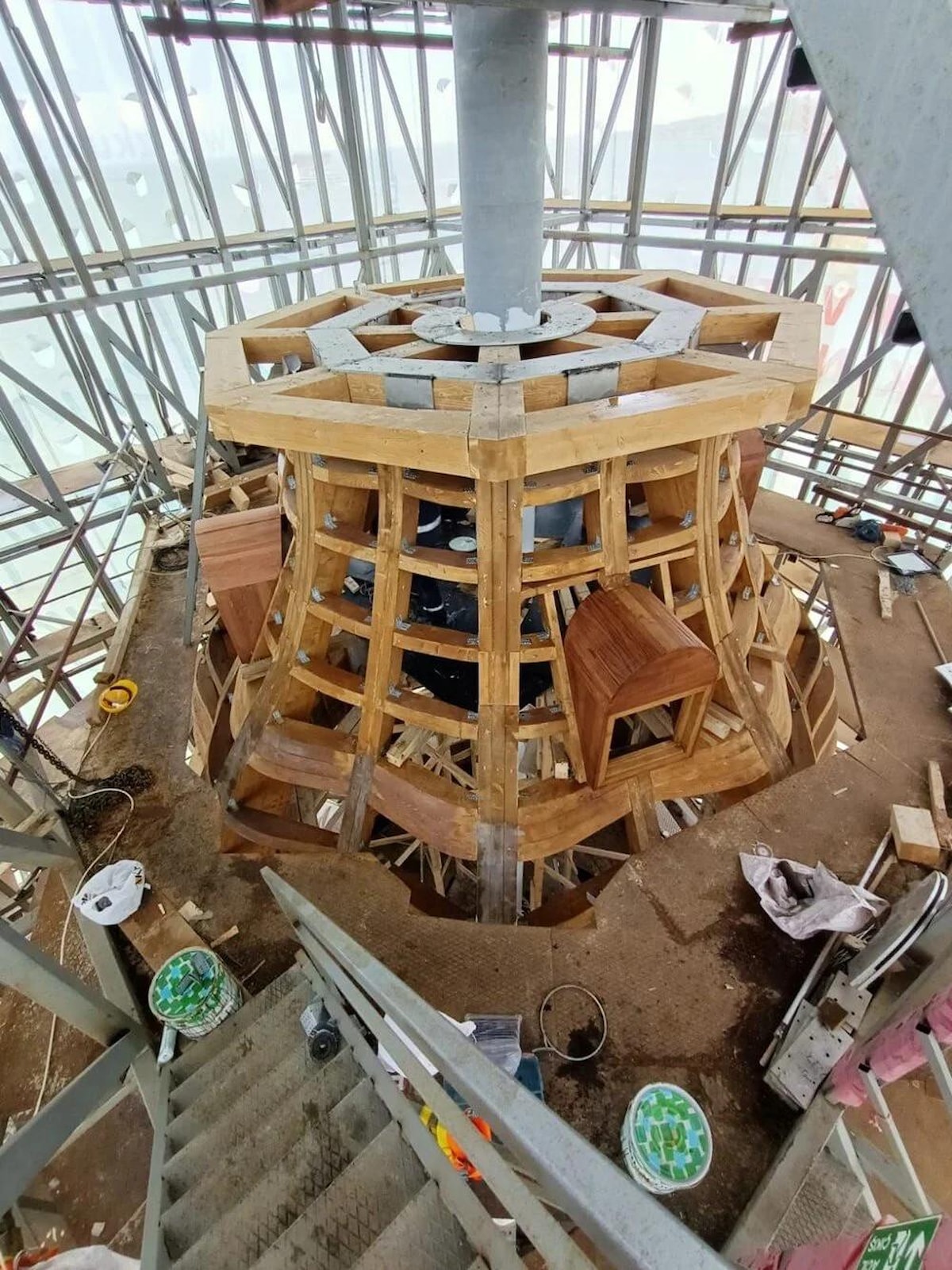 Kulede son olarak kubbe ahşap imalatları tamamlandı, kubbe görüntüsü aslına uygun olarak yeniden ortaya çıkarıldı, kaplama ve sonlandırma aşamasına geçildi.