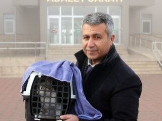 Çakır Sivas Adliyesinde bugün görülen dava duruşmasına korumaya çalışırken suçlandığı kedisiyle birlikte katıldı.