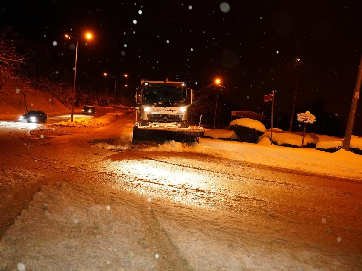 Düzce’de sağanak kar yağışı etkisini artırarak sürdürürken, Düzce Belediyesi karla mücadele çalışmalarını aralıksız sürdürüyor.