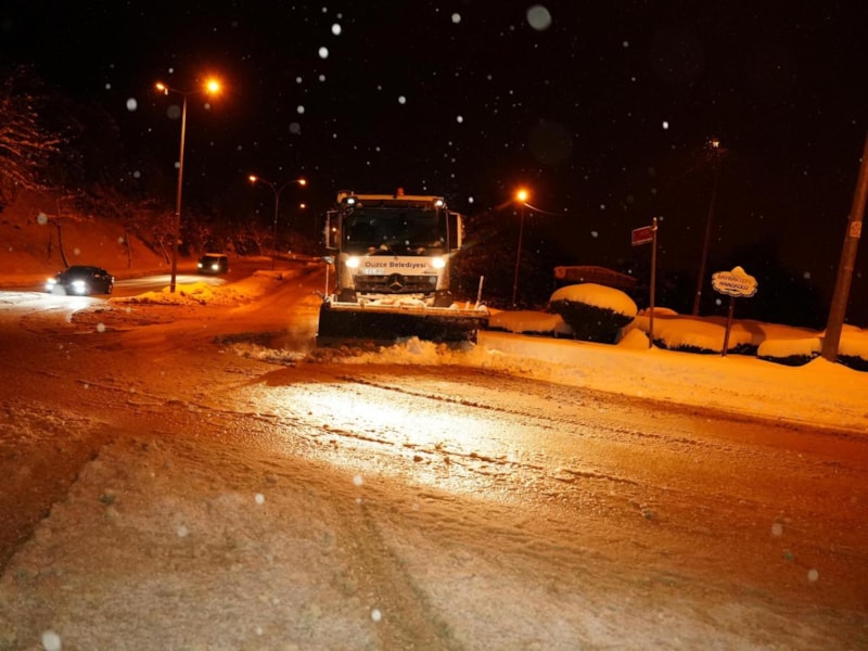 Düzce Belediyesi şehri etkisi altına alan yoğun kar yağışına karşı 24 saat esasına göre mücadele çalışmalarını sürdürüyor. 24 saattir kontak kapatmayan Düzce Belediyesi kar yağışının getirdiği olumsuzlukları ortadan kaldırmak ve güvenli ulaşımı sağlamak üzere yoğun bir çalışma yürütüyor.
