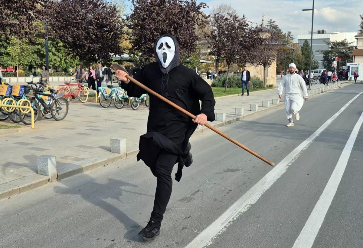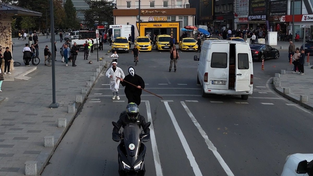 - Gençler, aşırı hız yapan bir motosiklet sürücüsünü kostümle kovalayarak çevredekilerin ilgisini çekti.