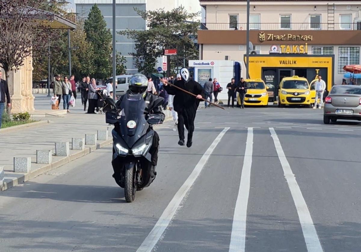 Sosyal deneyin amacını anlatan Bişgin, “Her gün onlarca motosiklet kazası oluyor. Kasksız, ekipmansız ve aşırı hız yapan kardeşlerimize sosyal bir mesaj vermek istedik. Dikkatlerini çekmek ve güvenli sürüş yapmalarını sağlamak istedik” dedi.