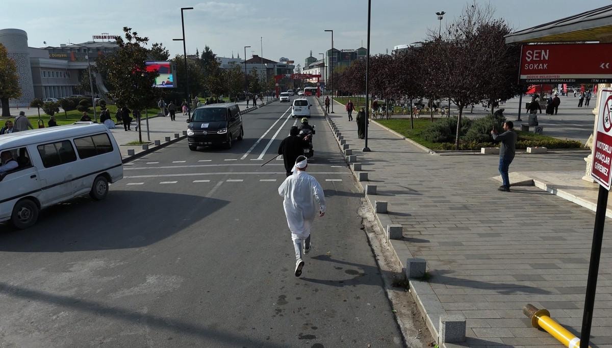 - Düzce'de iki sosyal medya içerik üreticisi, motosiklet kazalarına dikkat çekmek için bir sosyal deney yaptı.