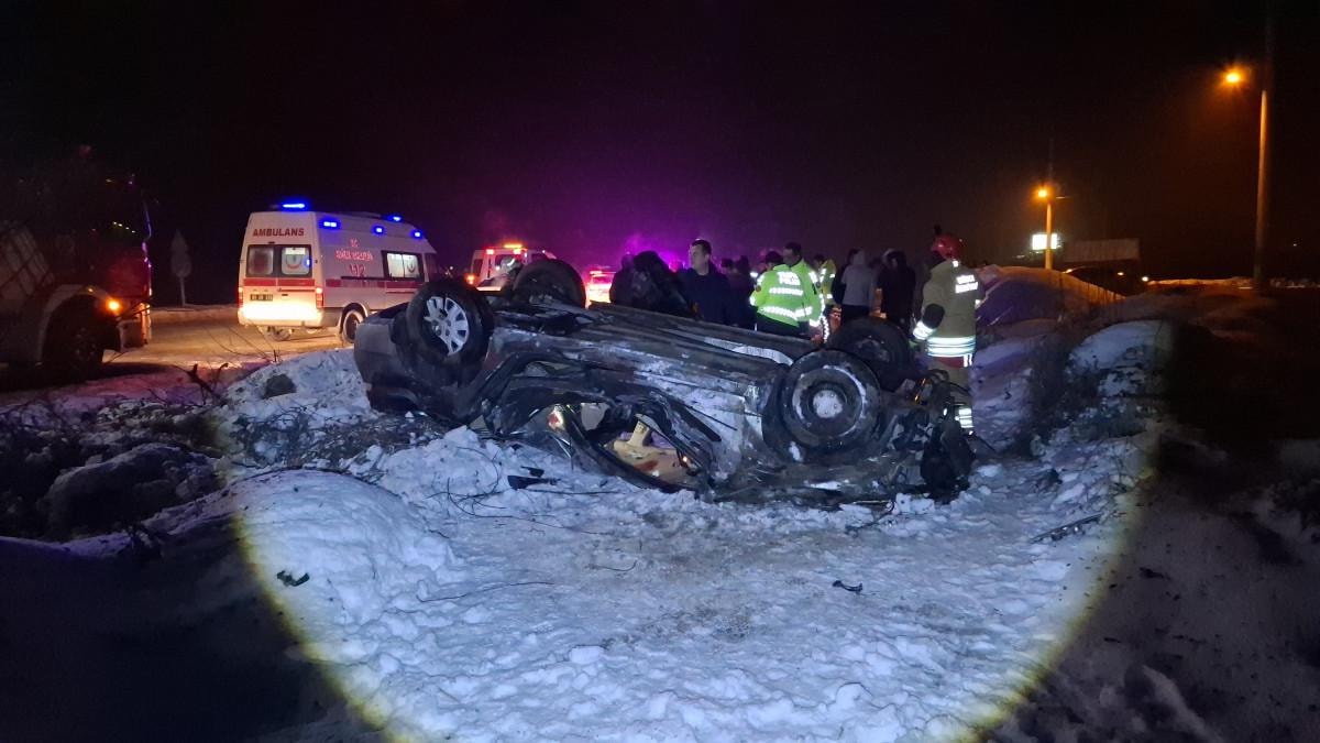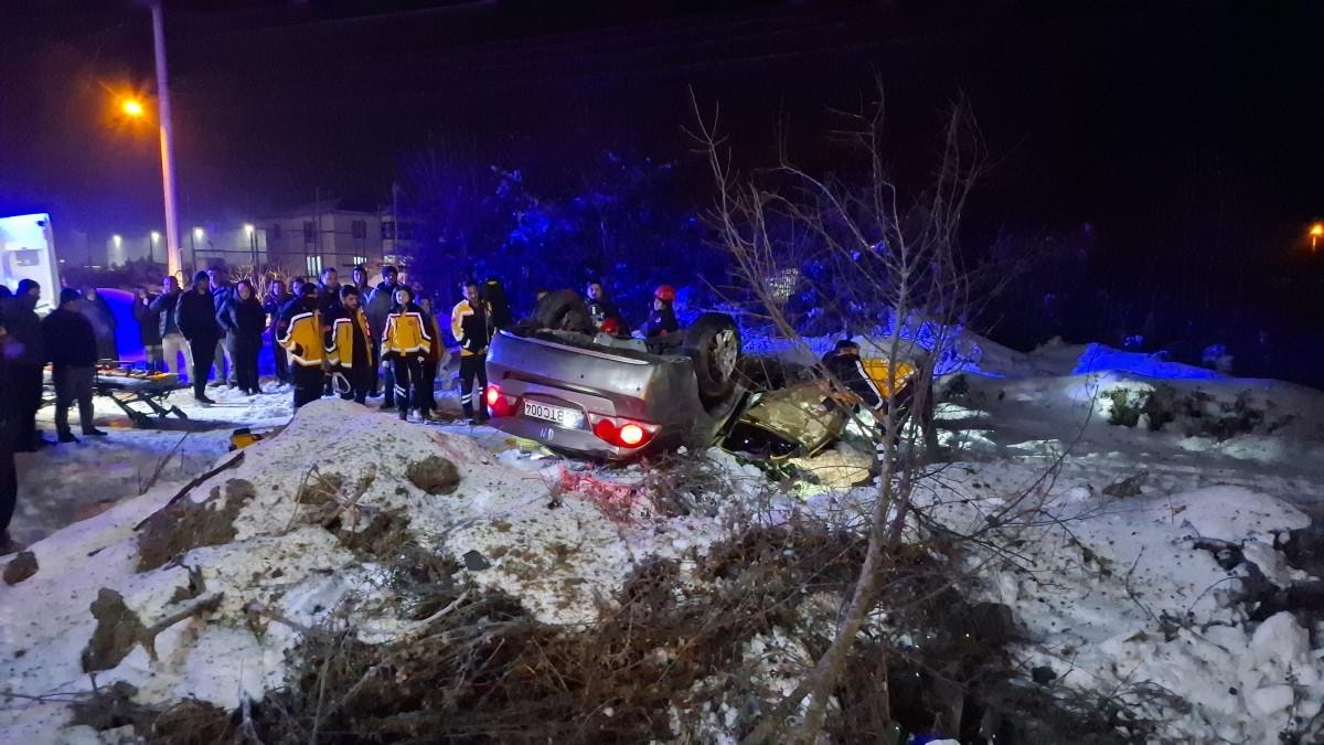 Düzce'de saat 23.30 sıralarında D-100 Karayolu'nun Hacıkadirler köyü mevkisinde, İstanbul istikametine giden Adem Pekdemir idaresindeki 06 BTC 004 plakalı otomobil, gizli buzlanma nedeniyle kontrolden çıkarak yan yola uçup takla attı.