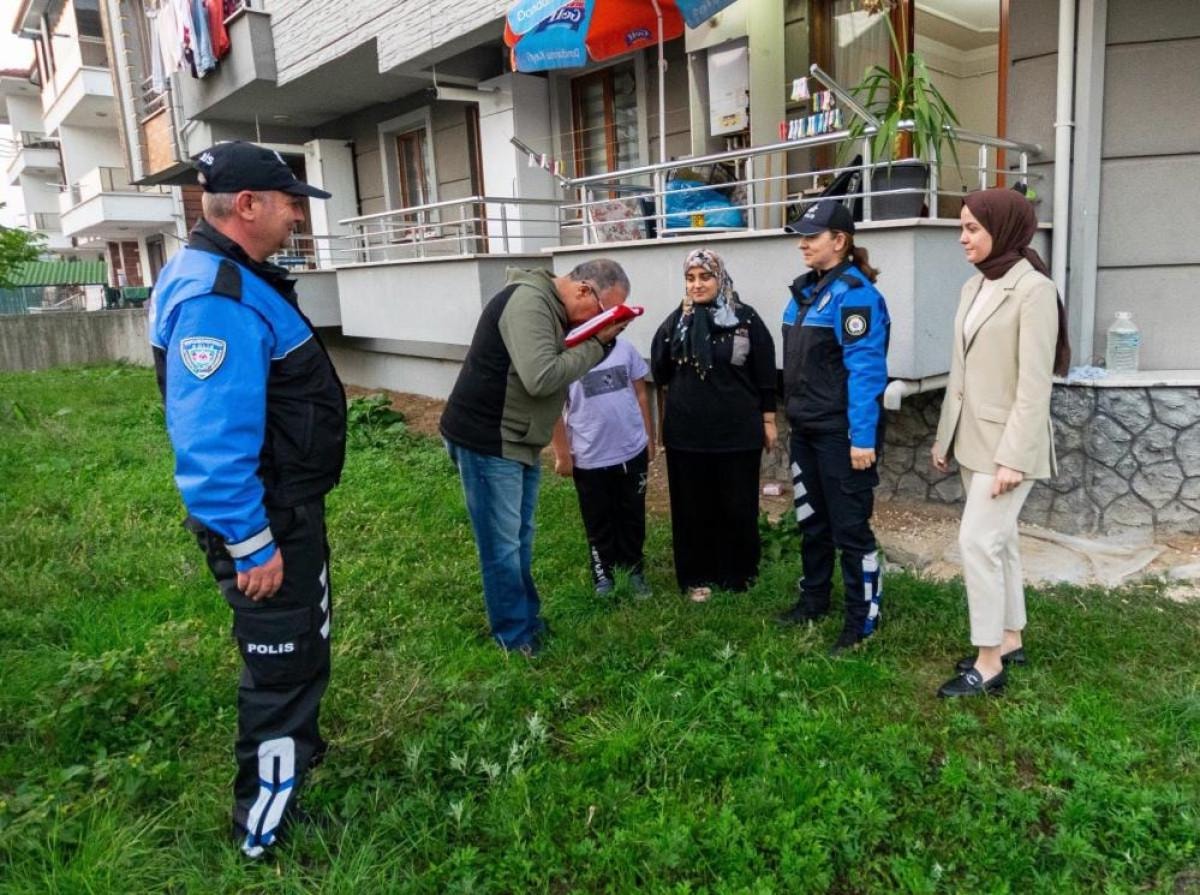 Polis ekipleri, aileyiz ziyaret ederek Türk bayrağı hediye etti