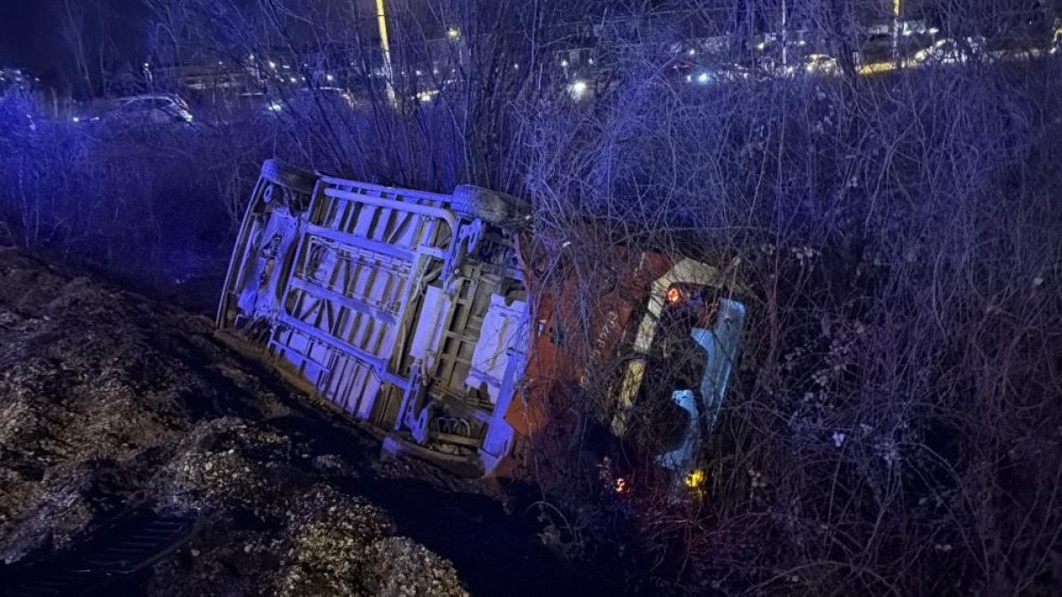 Çarpışmanın etkisiyle otobüs şarampole devrildi.