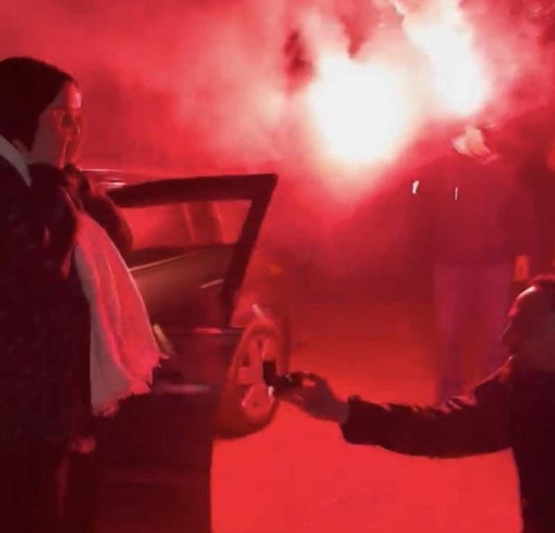 Olay yerine ulaşan Elif Ceylan, sevgilisini yerde yatarken görünce büyük bir endişe yaşadı. Bu sırada çevrede bulunan gazetecilere tepki göstererek çekim yapılmamasını istedi. Ancak birkaç dakika sonra Onur Eski’nin arkadaşları meşalelerle alana girince, yaşananların bir sürpriz olduğu ortaya çıktı.
