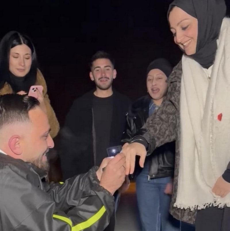 Meşaleler eşliğinde ayağa kalkan Onur Eski, Elif Ceylan’a evlilik teklifinde bulundu. Hem korku hem de mutluluğu aynı anda yaşayan genç kadın, duygusal anların ardından teklifi kabul etti. Çevrede toplanan vatandaşlar ve arkadaşları çifti alkışlarla kutladı.
