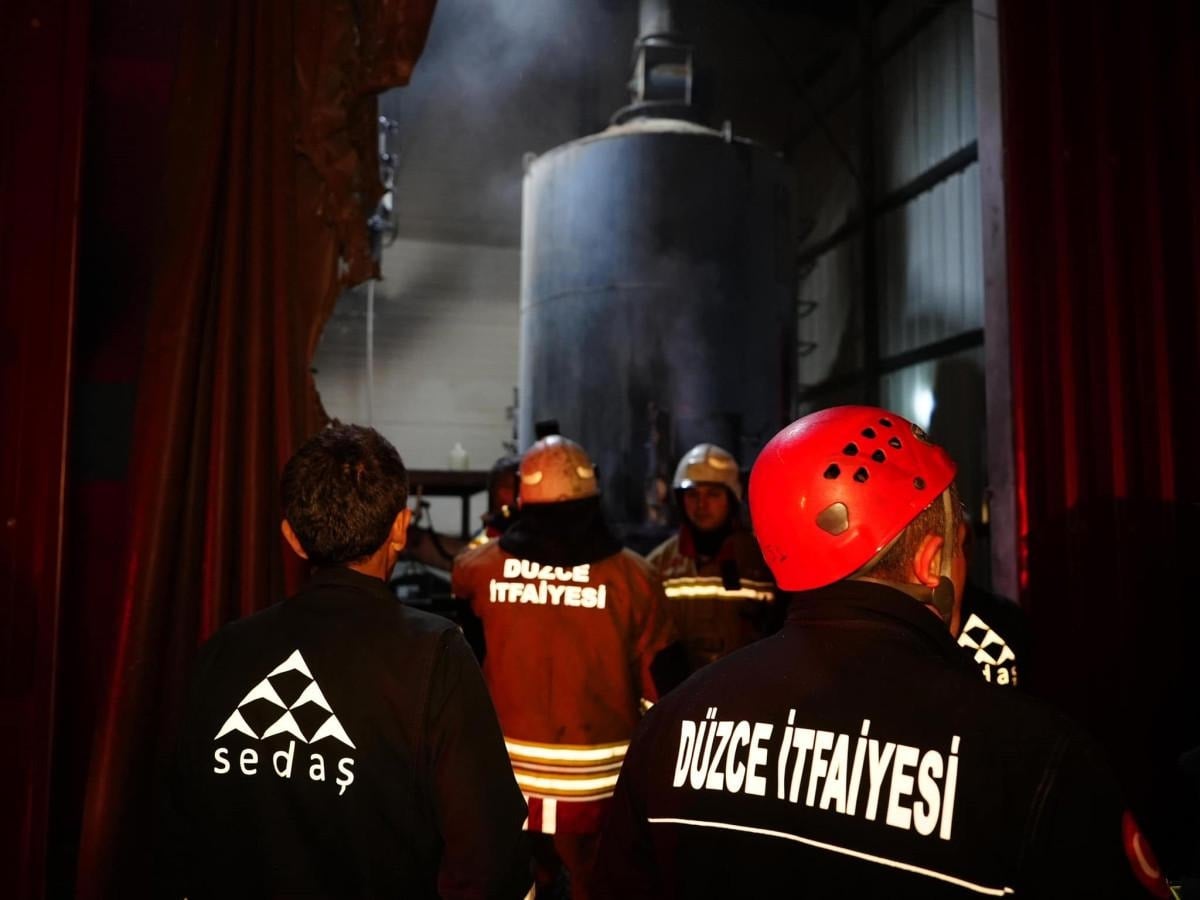 Düzce’nin Şaziye köyünde saat 23.00 sıralarında kereste fabrikasının kazan bölümünde yangın çıktı.