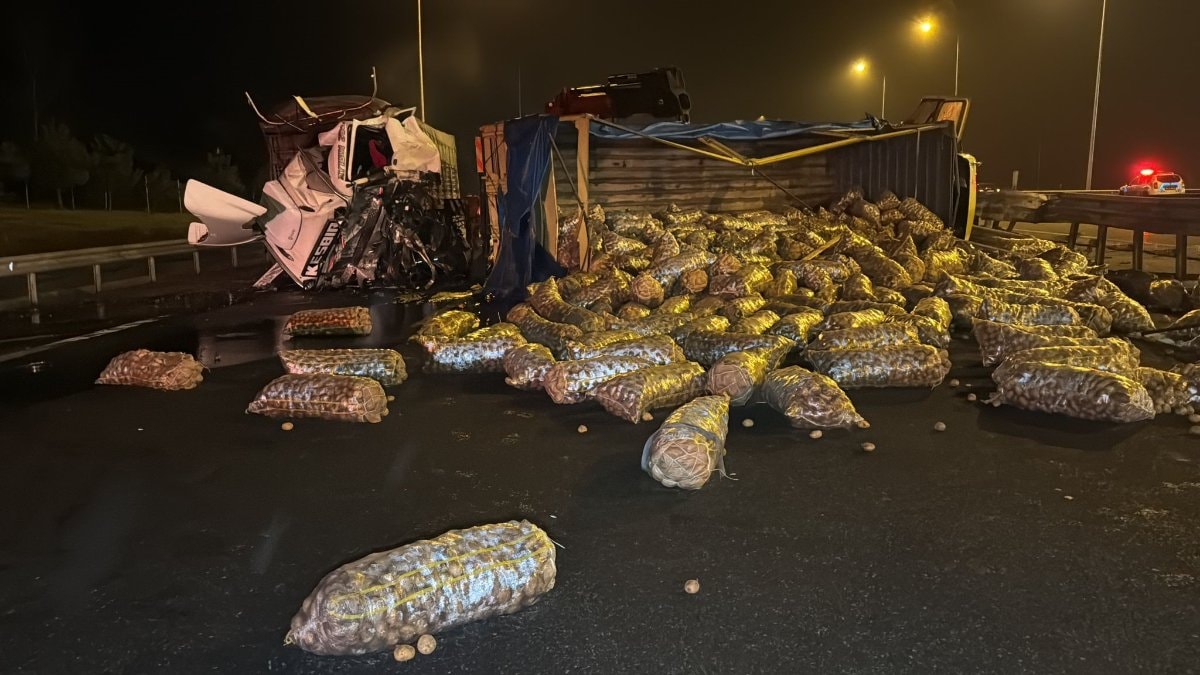 Türkiye’nin en önemli geçiş noktalarından biri olan Anadolu Otoyolu’nun Kaynaşlı geçişinde, Bolu Dağı Tüneli'nden İstanbul’a seyir halinde olan Yusuf Öztürk idaresindeki 51 LA 746 plakalı patates yüklü kamyon, aynı istikamette seyir halinde olan Enes Solmaz idaresindeki 06 DT 6746 plakalı tırla çarpışarak devrildi.