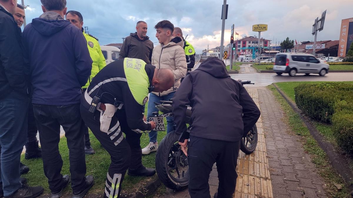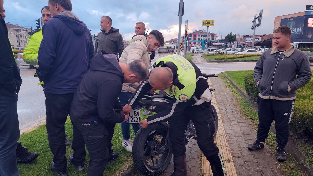 Düzce İl Emniyet Müdürlüğü Trafik, Tescil ve Denetleme Şube Müdürlüğü ekipleri Çoban kavşağında rutin denetimleri sırasında durumundan şüphelendikleri bir motosiklet sürücüsünü durdurdu.