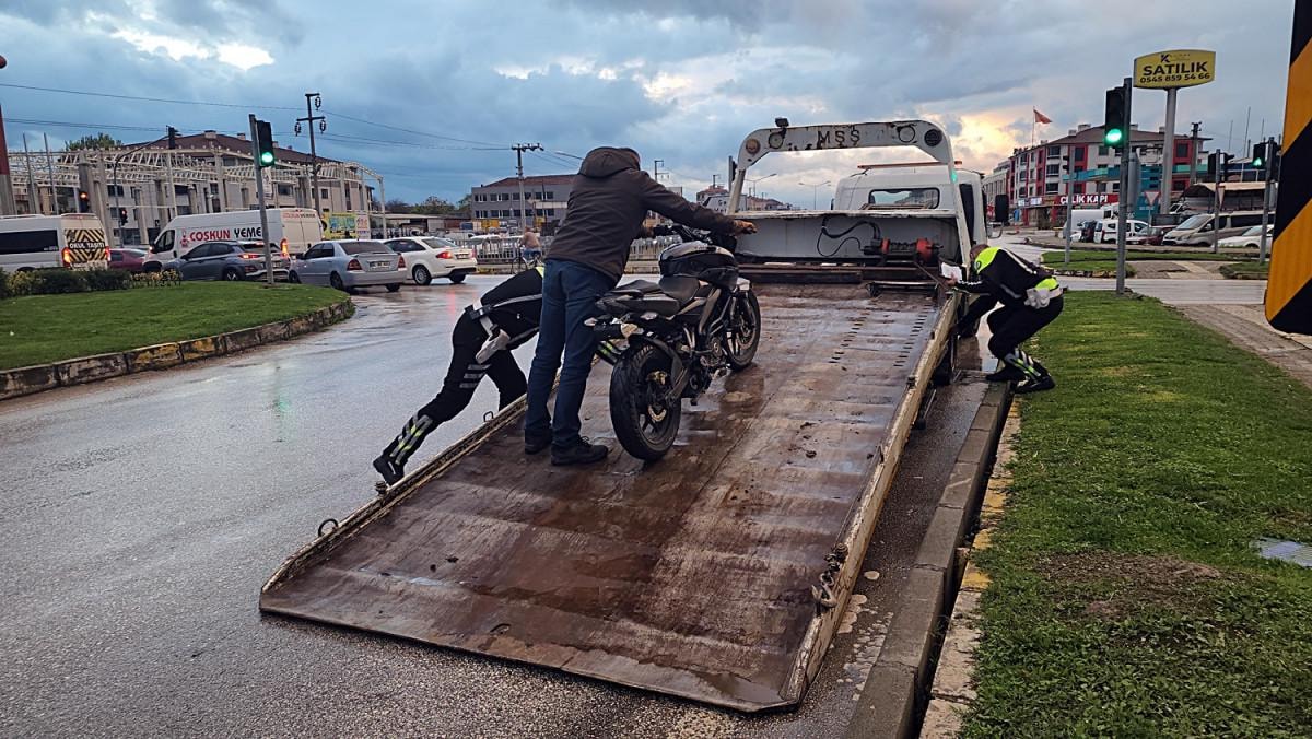 Sürücüye sahte plaka ve ehliyetsiz araç kullanmaktan 28 bin 492 lira cezai işlem uygulandı. Ayrıca motosiklet trafikten men edildi.