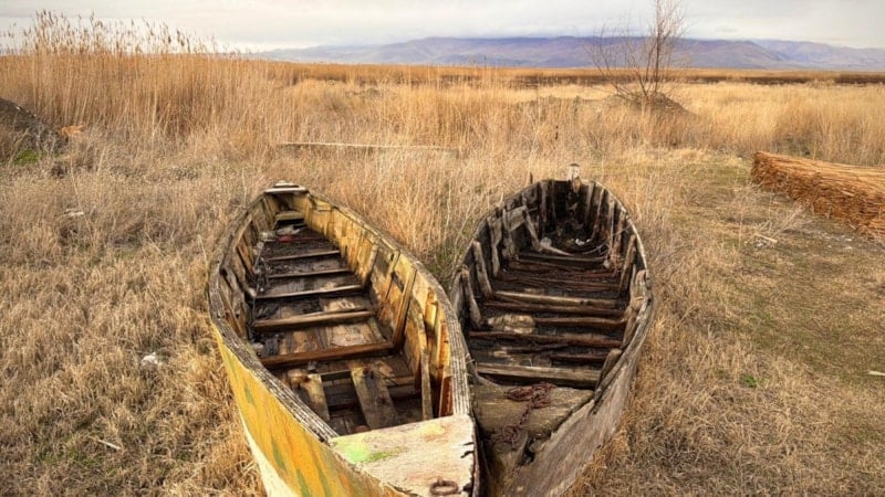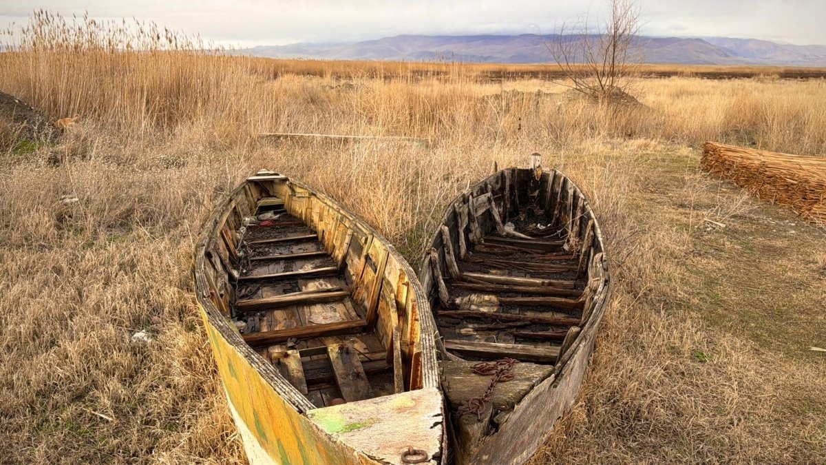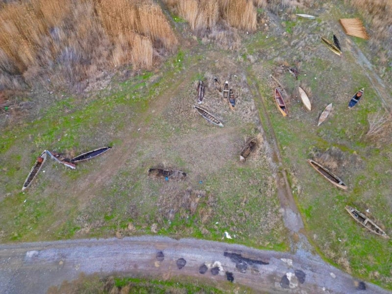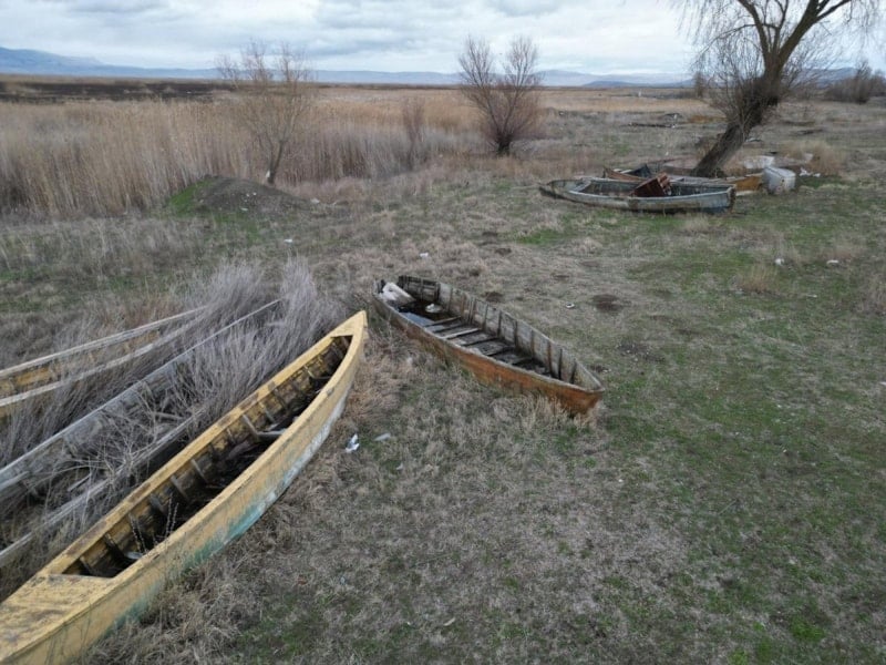Suyun çekilmesiyle birlikte, gölün simgesi olan geleneksel kayıklar suya değil, sertleşmiş toprağa hapsoldu.