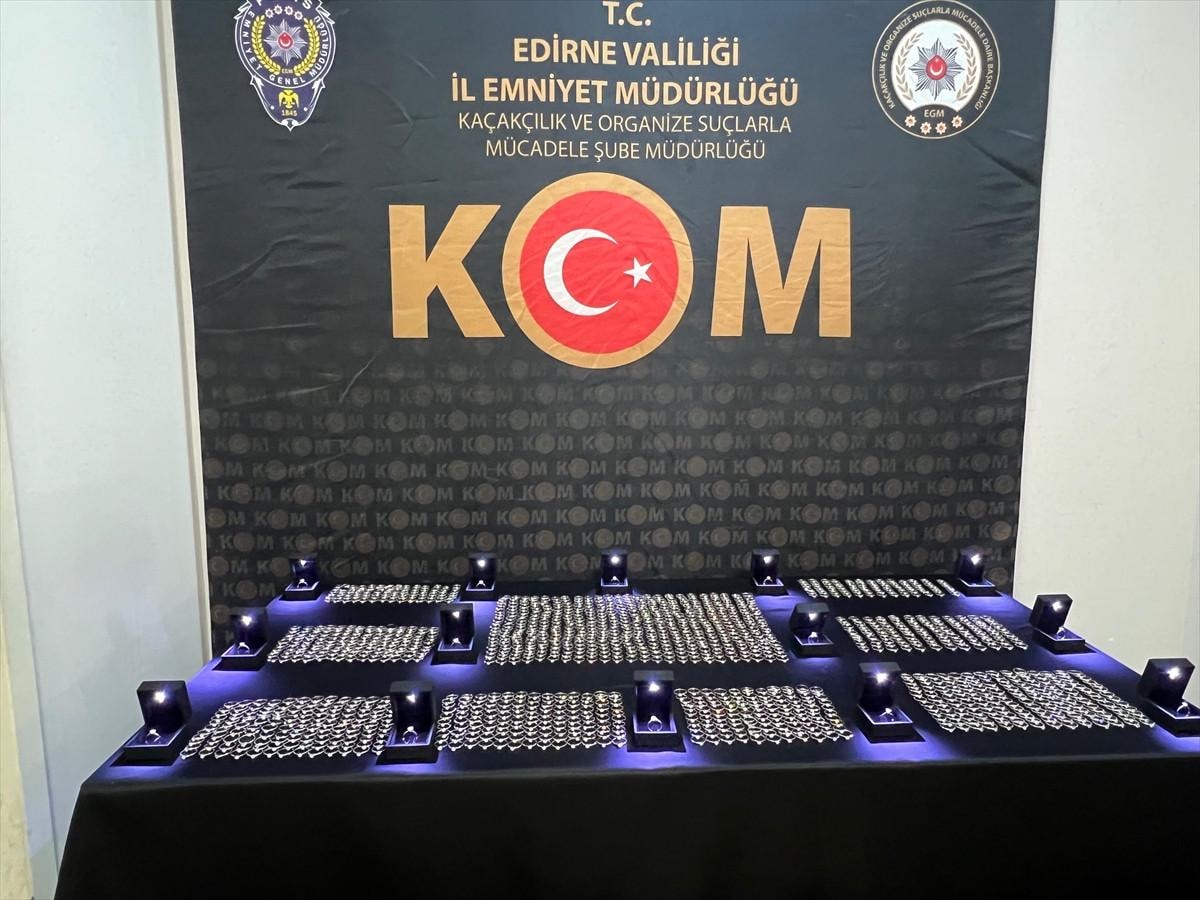 Ukrayna vatandaşı Y.U'nun idaresindeki tırda yapılan aramada 5 kilo 640 gram bileklik, tespih, kolye olarak işlenmiş kehribar, 2 kilo 650 gram ham kehribar, 1527 adet üzerinde pırlanta taş bulunan yüzük bulundu.