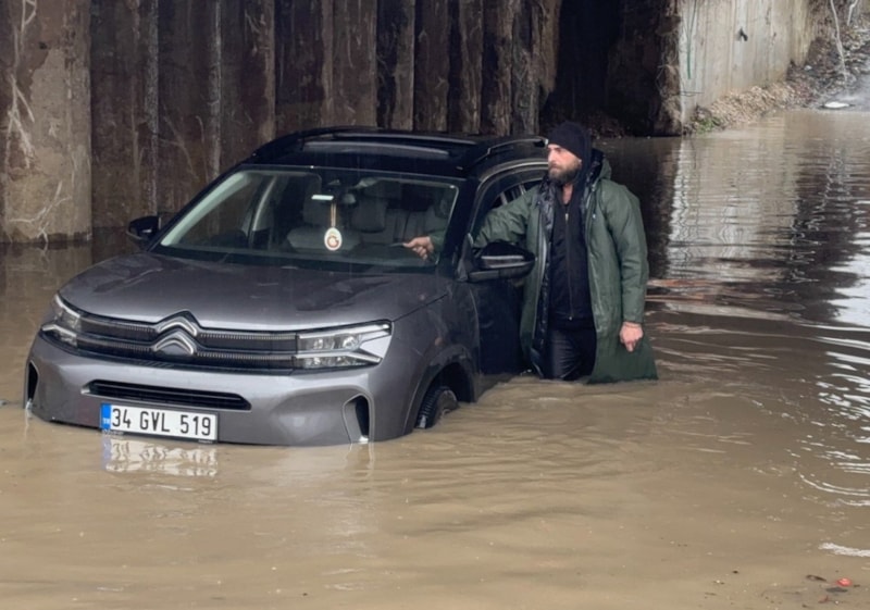 Yağışın etkisini artırmasıyla birlikte hızlı tren köprüsü altında bir otomobil su birikintisi içerisinde kaldı. Araçta mahsur kalan vatandaşların ihbarı üzerine olay yerine itfaiye, polis ve sağlık ekipleri sevk edildi.