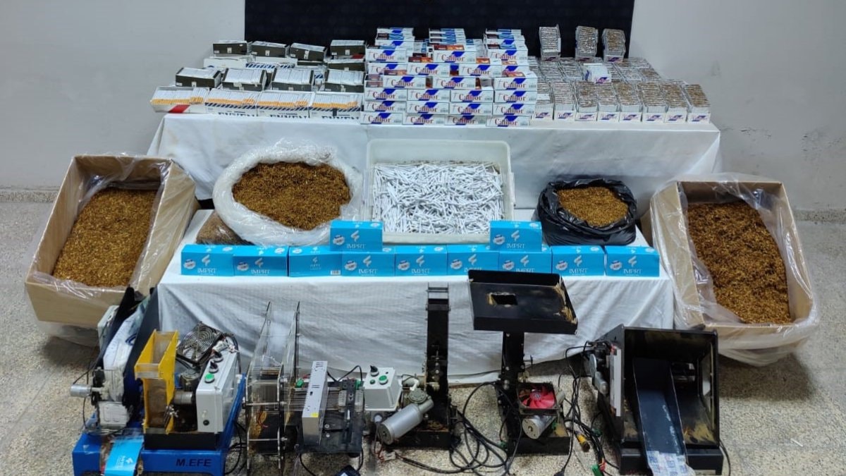 Yapılan aramalarda, 29 bin 60 adet kıyılmış tütün ile doldurulmuş makaron, 103 bin 950 adet boş makaron, 6 adet sigara sarma makinesi, 1 adet sigara paketleme makinesi, 40 kg kıyılmış tütün, 186 adet boş sigara kutusu, 1090 adet paketlemede kullanılan kilitli poşet, 28 adet kesilmiş bandrol ele geçirildi. 7 şüpheli hakkında adli işlem başlatıldı.