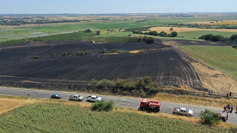 Edirne'de, hasat esnasında biçerdöverin tutuşması sonucu çıkan yangında 100 dekar buğday tarlası zarar gördü..