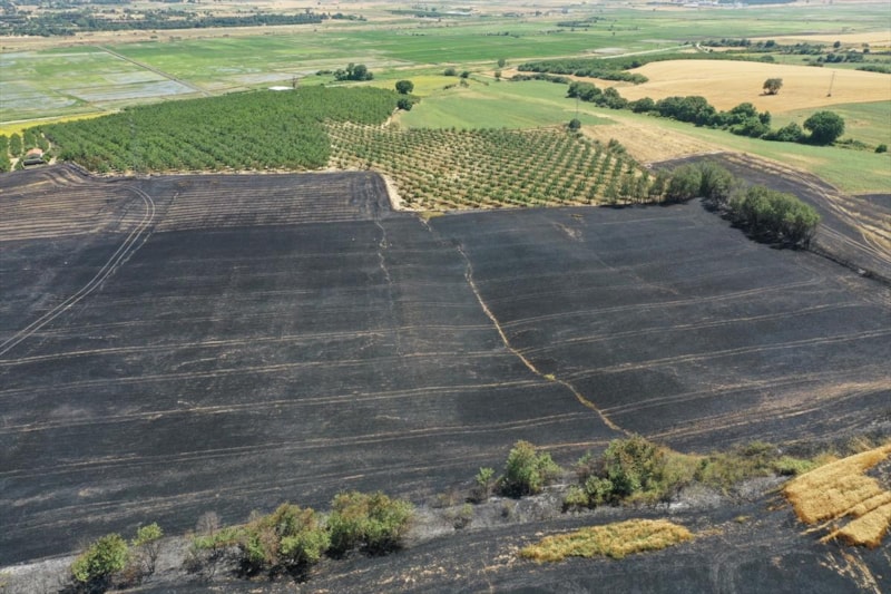 Ekiplerin müdahalesiyle söndürülen yangın sonucu 100 dekar buğday ekili alan zarar gördü. Alevlerin sıçradığı yaklaşık 150 dönüm anız alanı da yangından etkilendi.
