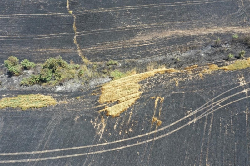 Biçerdöverden sıçrayan alevler tarlaya sirayet etti.