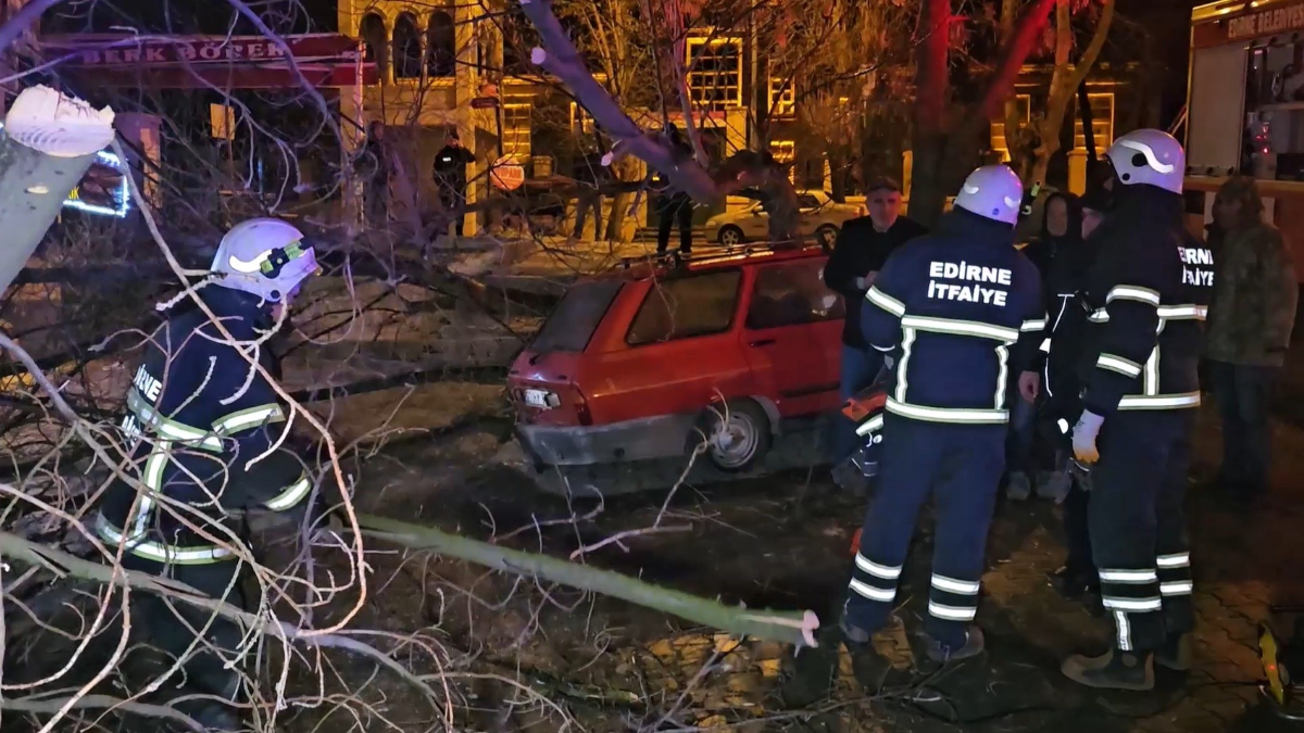 Edirne'nin Meydan Mahallesi Su Terazisi Sokak'ta, Nuri Alibakar'a ait 22 HY 697 plakalı park halindeki otomobilin üzerine kökü çürümüş ağaç devrildi.