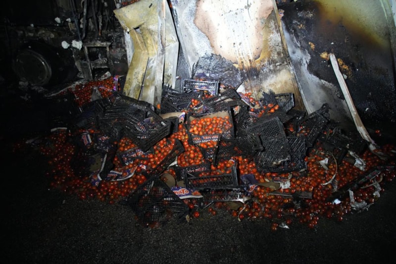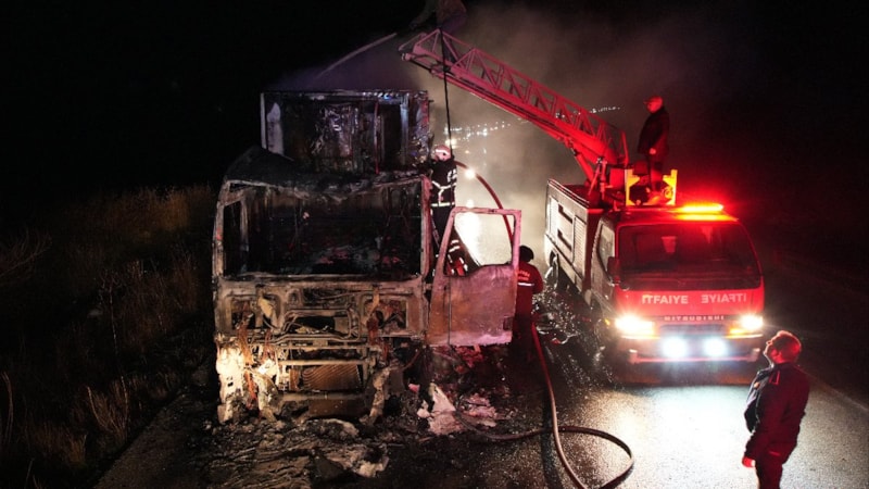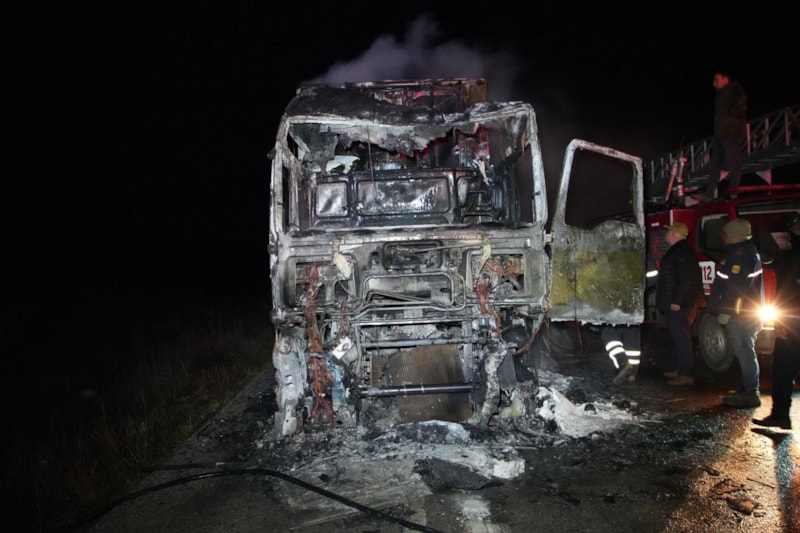 Türkiye’den aldığı domates yükünü Ukrayna’ya götürmek için yola çıkan, sürücü Viktor Berezhansky idaresindeki Ukrayna plakalı tırda, yol kenarında beklerken dorseye bağlantılı olduğu öğrenilen soğutucu motorundan yangının çıktığı iddia edildi.
