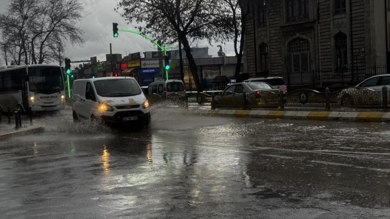 Hava sıcaklığının 11 derece ölçüldüğü kentte aniden bastıran yağmur kısa sürede cadde ve sokaklarda su birikintilerine neden oldu.