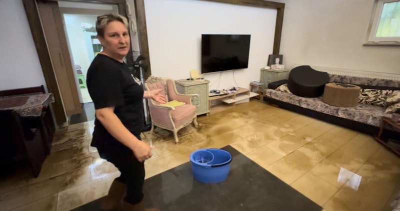 Evini su basan Didem Tuna Erdemir, "Geçen yıl da rögar taşması sonucu evimizi su basmıştı, bu yıl da evimizi su bastı. Şu an gördüğünüz gibi ev hayvanların pislikleriyle dolu.