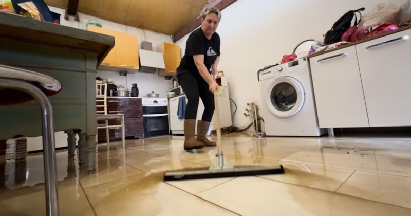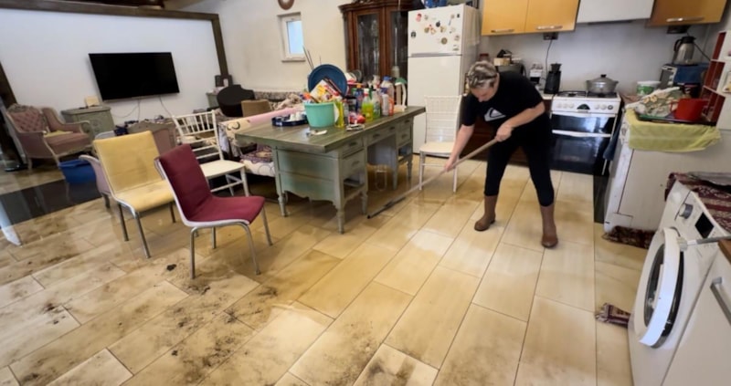 Ev sahibi, kovalar ve çekpaslarla suyu tahliye etmeye çalıştı.