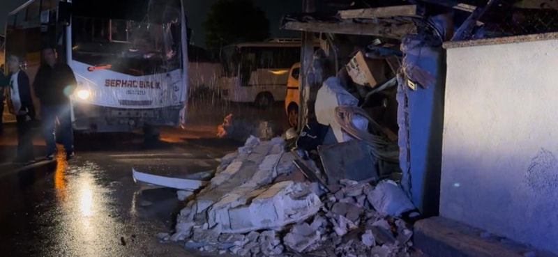 Kaza nedeniyle minibüs ve evde maddi hasar oluştu.