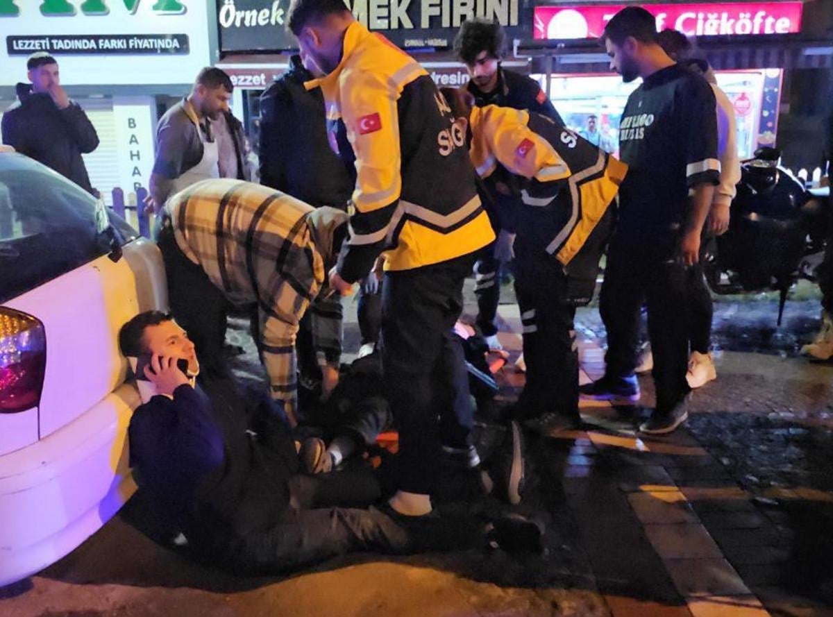 Çarpmanın şiddetiyle 3 kişi metrelerce sürüklenerek yaralanırken, ihbar üzerine bölgeye polis ve sağlık ekipleri sevk edildi.