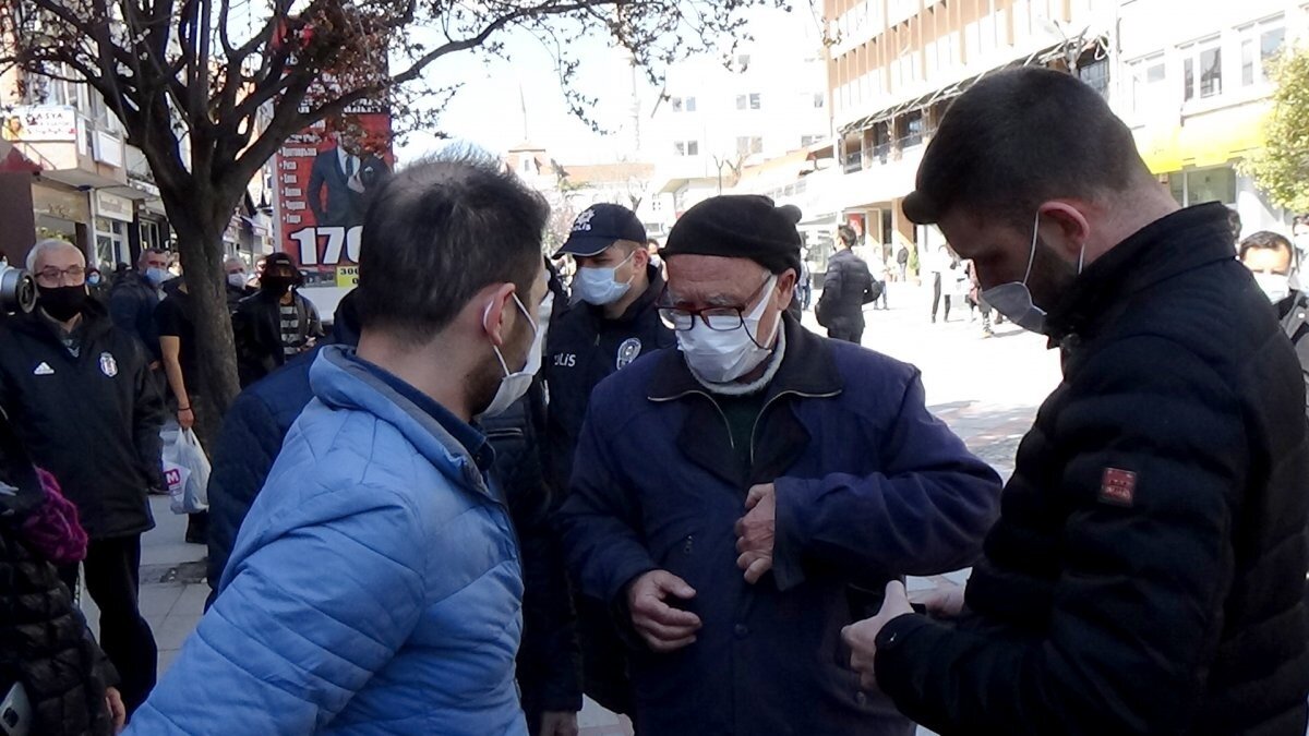 "Ben de hakkımı kullanıyorum" diyen yaşlı adama polis memuru, "Doğru yolu bu değil" dedi.