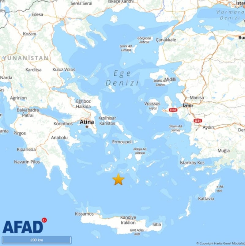 Afet ve Acil Durum Yönetimi Başkanlığı’nın (AFAD) internet sitesinden yaptığı açıklamaya göre, merkez üssü Ege Denizi olan bir deprem duyuruldu..