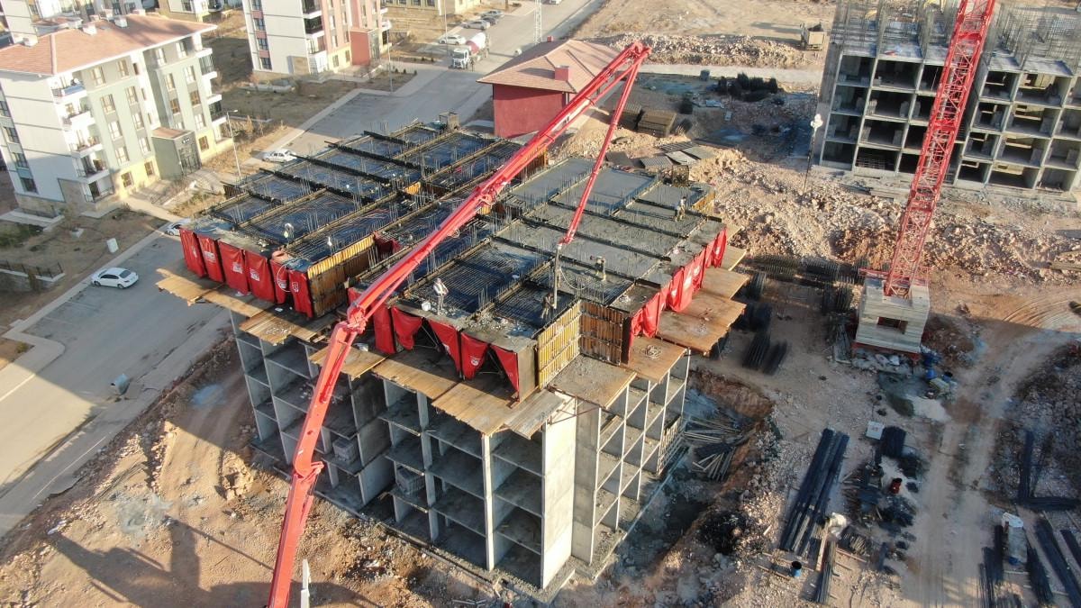 30 Ağustos'ta yer teslimini aldıklarını belirten Şantiye Şefi Kerim Kahveci, "Şu anda burada 27 bloğumuz var. Önümüzdeki yıl 6 Haziran'da inşallah bloklarımızı yaparak teslim edeceğiz. Buradaki yapılarımız zemin artı 7 kat şeklinde yapılıyor. Çift bodrumlu ve tek bodrumlu olan konutlarımız var. Toplamda ise 608 dairemiz var. Depremden dolayı Çevre Şehircilik ve İklim Değişikliği Bakanlığı önderliğinde TOKİ kaya zeminleri baz alıyor. Bizim zeminlerimizde herhangi bir sıkıntı yok. Tünel kalıp sistemi ile çalışıyoruz.