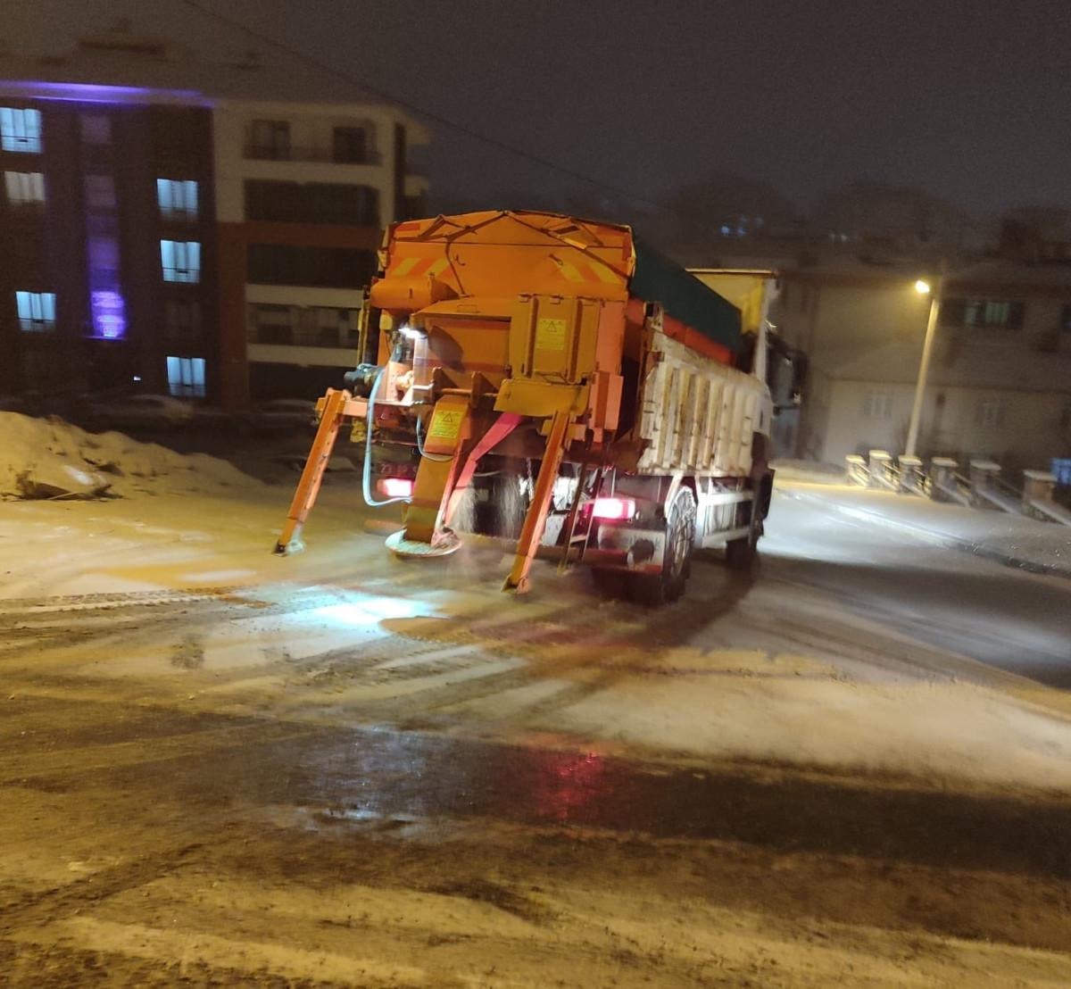 Kar yağışıyla birlikte Elazığ Belediyesi ekipleri buzlanmaya karşı kent genelinde tuzlama çalışması yaptı.