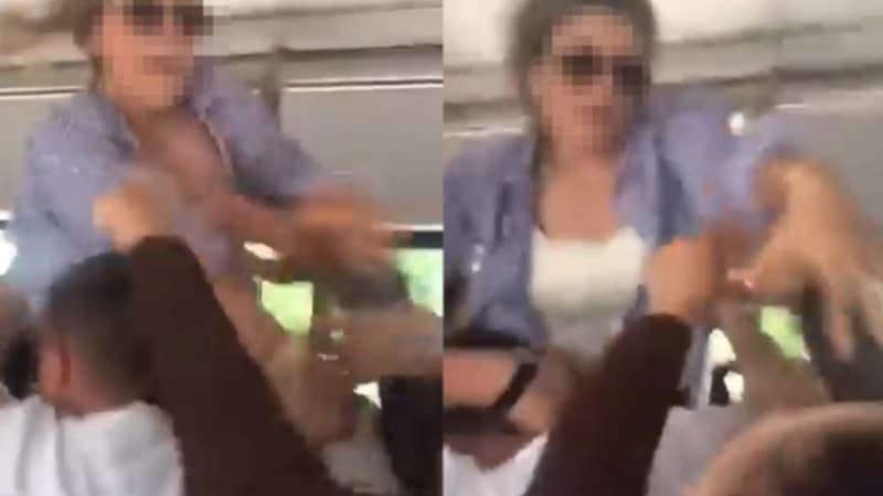 Görüntülerde, kadınların birbirlerine yumruk attığı, başka yolcuların ise kavgayı ayırmakta güçlük çektiği görülüyor.