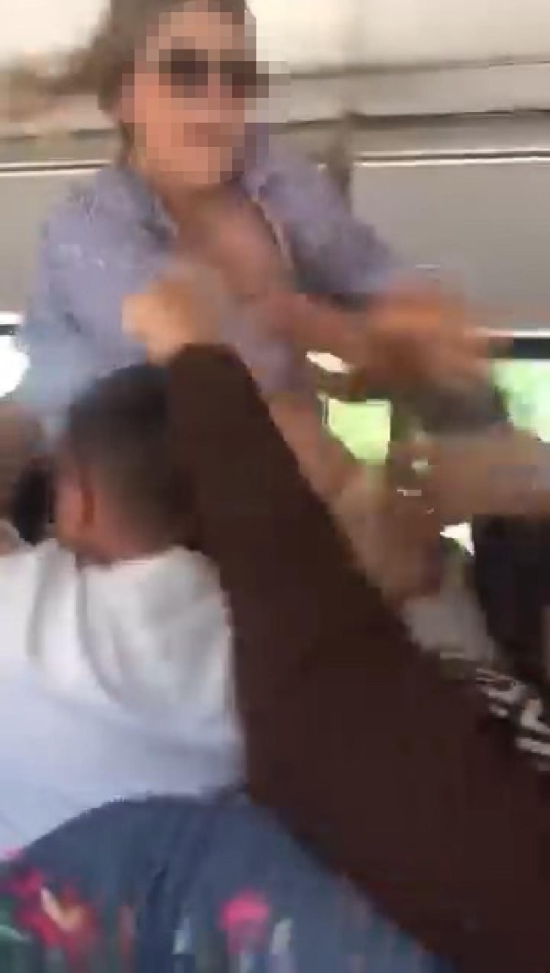 Kadınların kavgası ise otobüste yolculuk yapan bir vatandaşın cep telefonu kamerasına yansıdı.