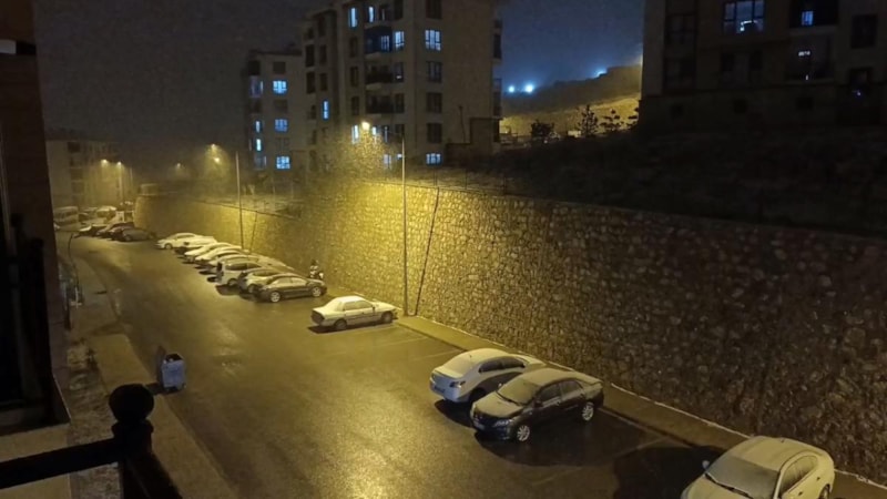 Meteoroloji 13’üncü Bölge Müdürlüğü’nün zirai don ve kuvvetli yağış uyarısının ardından Elazığ’da gece saatlerinde kar etkili oldu.