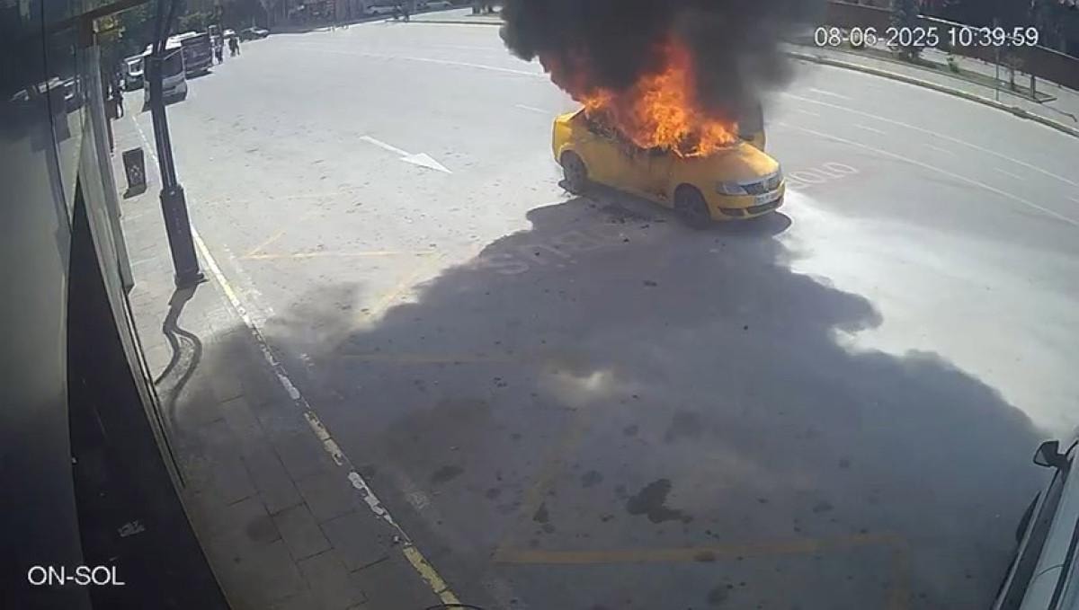 TAKSİ ALEV TOPUNA DÖNDÜ