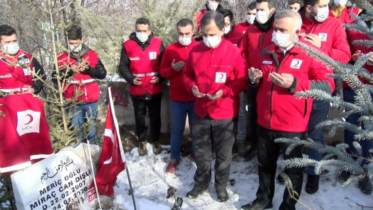 Depremde yıkılan 6 katlı Mavigöl Apartmanı'nda annesi 6,5 aylık hamile Pınar Dişli (38) ile birlikte hayatını kaybeden Türk Kızılay gönüllüsü Miraç Dişli (13) ve Sürsürü Mahallesi'nde yıkılan Dilek Apartmanı'nda enkaz altına kalarak hayatlarını kaybeden Fatma Yıldız (31) ile 2 yaşındaki oğlu Doruk Abbas, depremin yıl dönümünde Türk Kızılay tarafından kabirleri başında düzenlenen törenle anıldı.