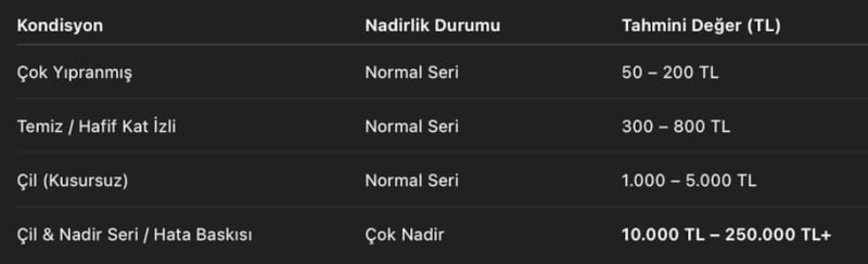 Uzmanlara göre değerleme yapılırken kondisyon, seri numarası, basım yılı ve nadirlik durumu en kritik faktörler.